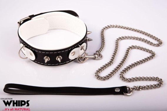 Wiązania - Obroża niewolnika ze smyczą, biała